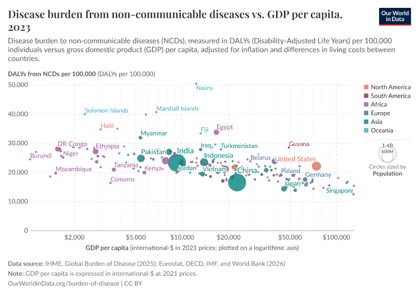 The visualizations here focus on the disease burden resulting from non-communicable diseases (NCDs).