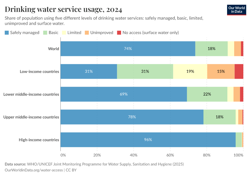Therefore, unsafe water sources are limited primarily to low and lower-middle-income countries.